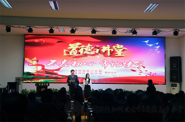▲南通市通州区地税六分局、南通市通州区实验中学联合主办的道德讲堂现场