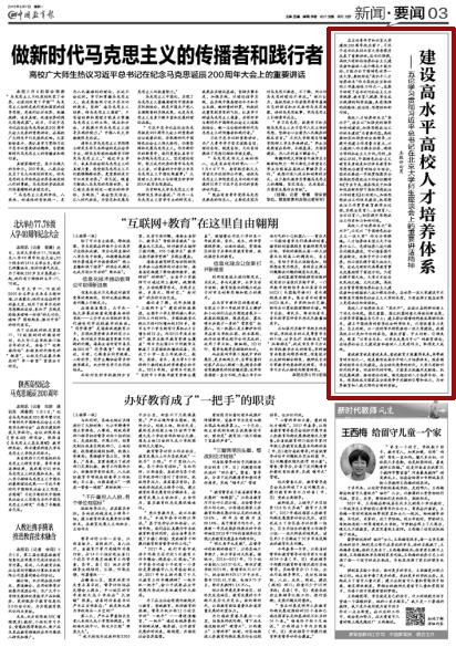 在五四青年节和北京大学建校120周年校庆前夕,习近平总书记来到北京大学考察并发表了重要讲话。总书记强调,高校只有抓住培养社会主义建设者和接班人这个根本才能办好,才能办出中国特色世界一流大学,要把形成“高水平人才培养体系”作为高校应当抓好的三项基础性工作之一。这集中体现了总书记对社会主义办学规律、教书育人规律、学生成长规律的科学把握,具有很强的战略性、政治性、思想性和针对性。