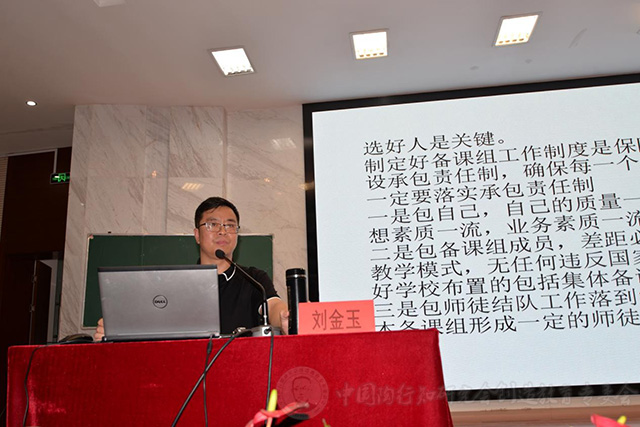 5月21日下午,江苏泰兴洋思中学副校长刘金玉为大家作了《科学统筹,合理实施:化国本化课程为校本化课程的思考与实践》的讲座。刘校长对校本化备课的理性思考和校本化备课的自觉实践做了全面深入地讲解。