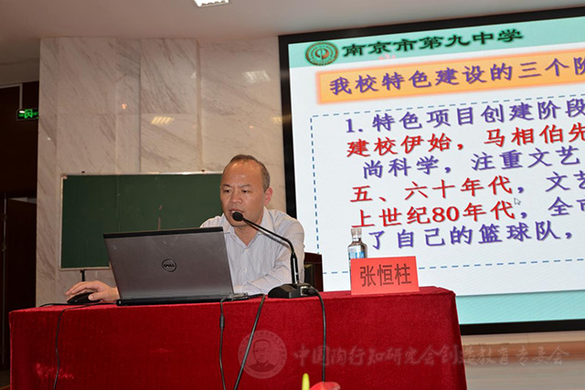 5月23日下午,南京市第九高级中学的张恒柱校长作了《不忘博雅心 传承尚美情——关于学校特色建设的思考与实践》的专题报告,张校长在报告里介绍了南京市第九高级中学文体特色形成的三个阶段以及学校的地平线课程体系等内容。